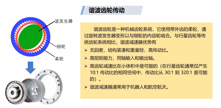 諧波減速機(jī),其通過具有柔性的薄壁外齒齒輪產(chǎn)生彈性變形后與剛性的內(nèi)齒輪進(jìn)行內(nèi)嚙合來實(shí)現(xiàn)傳動(dòng)的。它由剛輪、柔輪,波發(fā)生器三大傳動(dòng)元件組成。諧波減速機(jī)傳動(dòng)比大,無回差,結(jié)構(gòu)緊湊和重量輕,高精度等優(yōu)點(diǎn)在機(jī)器人及自動(dòng)化技術(shù)領(lǐng)域發(fā)揮舉足輕重的作用,我國自1980年開始進(jìn)行諧波減速器標(biāo)準(zhǔn)化和系列化;1985年制定了中小功率通用諧波減速器系列標(biāo)準(zhǔn),成為世界第四個(gè)擁有通用諧波減速標(biāo)準(zhǔn)的國家。