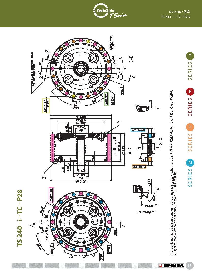 T 系列是帶有圓柱形殼體的Twinspin高精度減速機(jī)應(yīng)用范圍最廣的形式。 該系列內(nèi)部包含精密減速機(jī)構(gòu)和高強(qiáng)度交叉滾子軸承,又名“軸承式減速機(jī)”。這種設(shè)計(jì)可以把負(fù)載直接安裝在減速機(jī)輸出法蘭上,省去輸出端的額外軸承。 T系列采用模塊化設(shè)計(jì),允許用戶(hù)通過(guò)電機(jī)法蘭的方式連接各種電機(jī)。 標(biāo)準(zhǔn)的T系列減速機(jī)為半密封狀態(tài);需要用輸入法蘭和墊圈密封。SPINEA可根據(jù)客戶(hù)電機(jī)結(jié)構(gòu)提供全密封帶輸入法蘭的減速機(jī)。